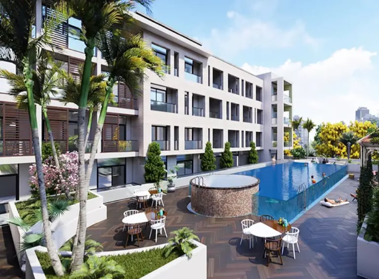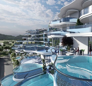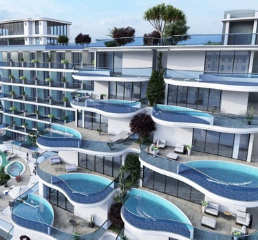 Studio, 1 și 2 dormitoare, cu balcoane spațioase și unele unități cu piscine private pe terasă.